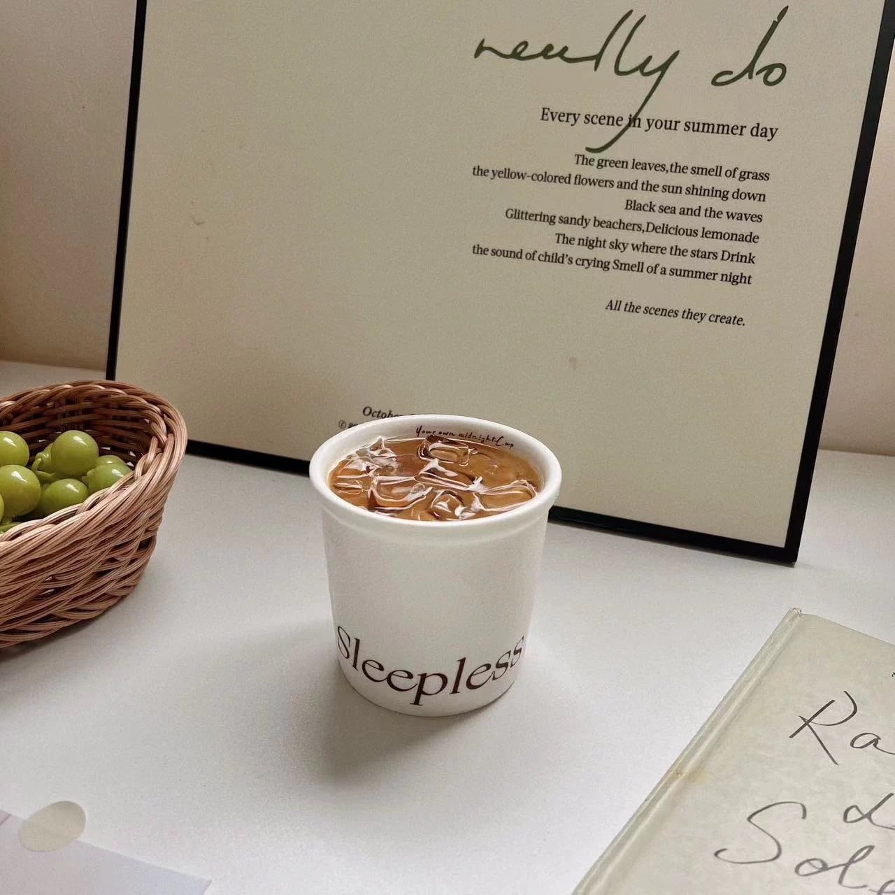 sleeplessマグカップ 陶器のレタリンググラス 紙コップ風 homecafe おうちカフェ マグカップ グラス プレート 韓国インテリア 韓国雑貨