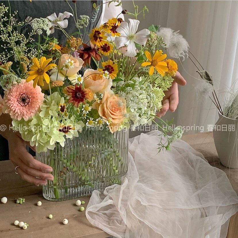 ストライプクリア花瓶 クリアドーナツ花瓶 フラワーベース 韓国インテリア 韓国雑貨 フラワーベース おしゃれ 可愛い マイホーム インテリア