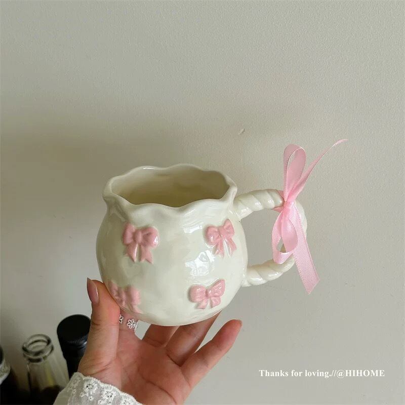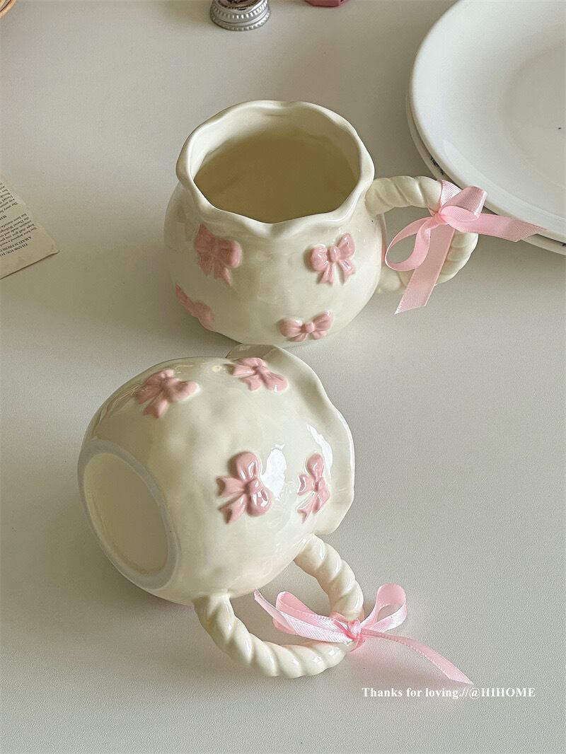 【即納】陶器のリボンマグ マグカップ レタリンググラス 紙コップ風 homecafe おうちカフェ マグカップ グラス プレート 韓国インテリア 韓国雑貨