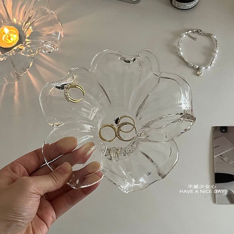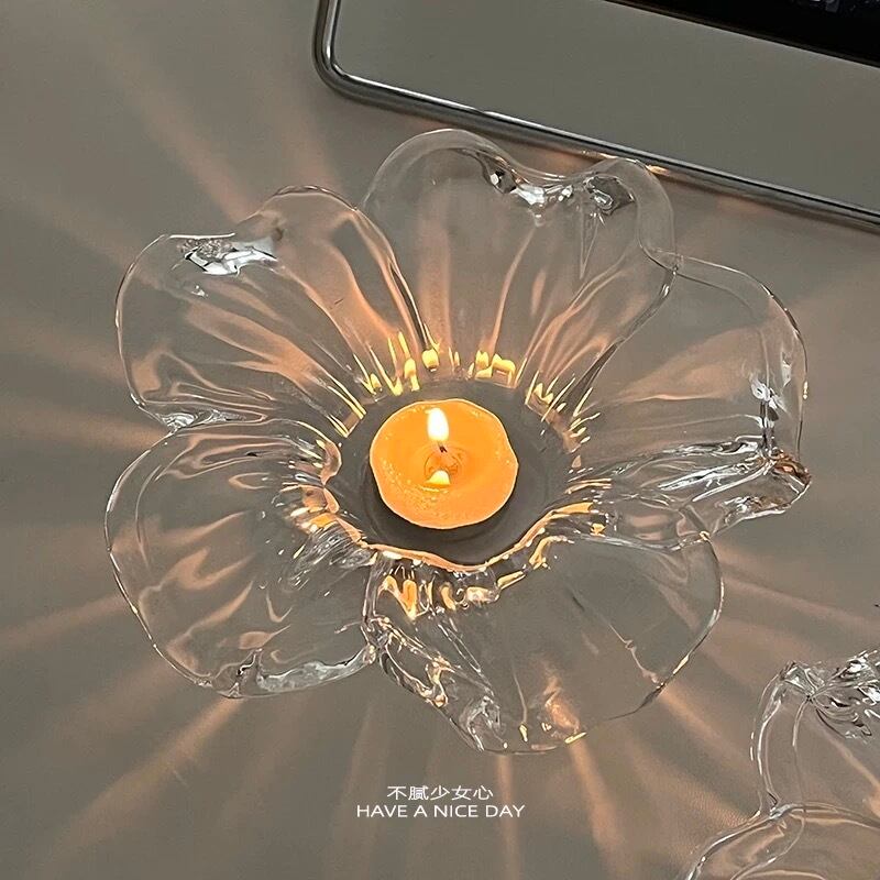 【即納】NEW花びらキャンドルホルダー お花 チューリップキャンドルホルダー キャンドルスタンド アクセサリートレイ アクセサリーケース クリアガラス 韓国インテリア 韓国雑貨