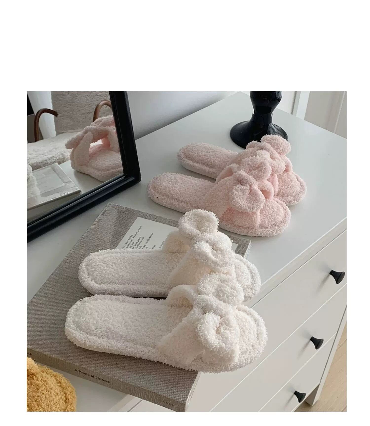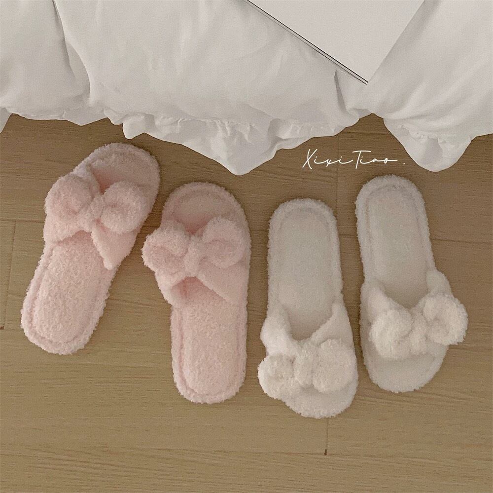 ふわふわリボンのルームシューズ スリッパ バレエコア ルームシューズ 韓国インテリア 韓国雑貨