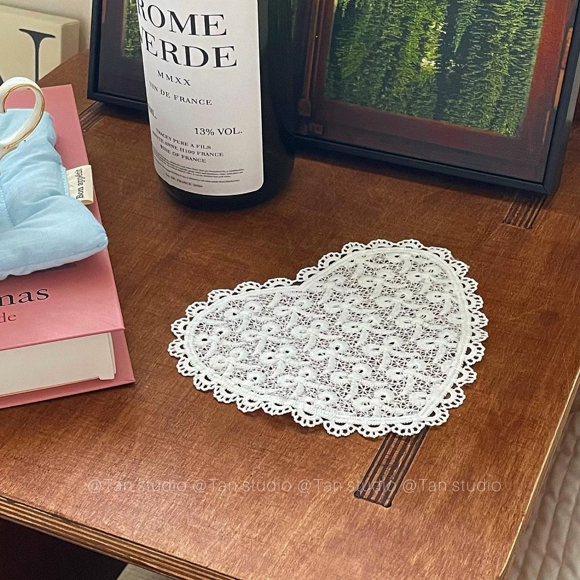 ハートアンティークレースコースター リボン 背景布 撮影 花柄 繊細レース ファブリック 北欧インテリア 韓国インテリア 韓国雑貨