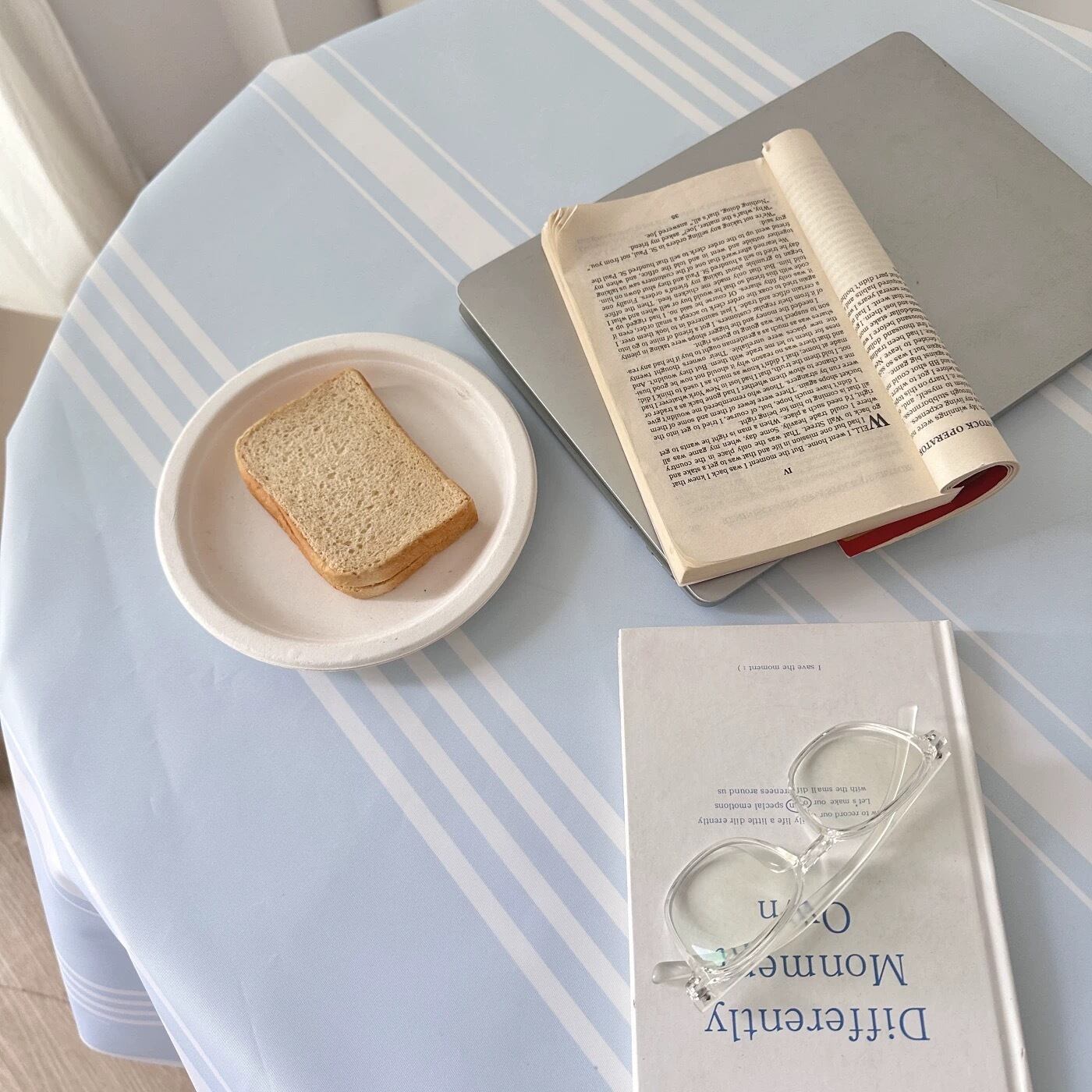 フレンチブルーのストライプテーブルクロス 防水 ブルーチェックテーブルクロス パステルカラー 韓国インテリア 韓国雑貨