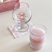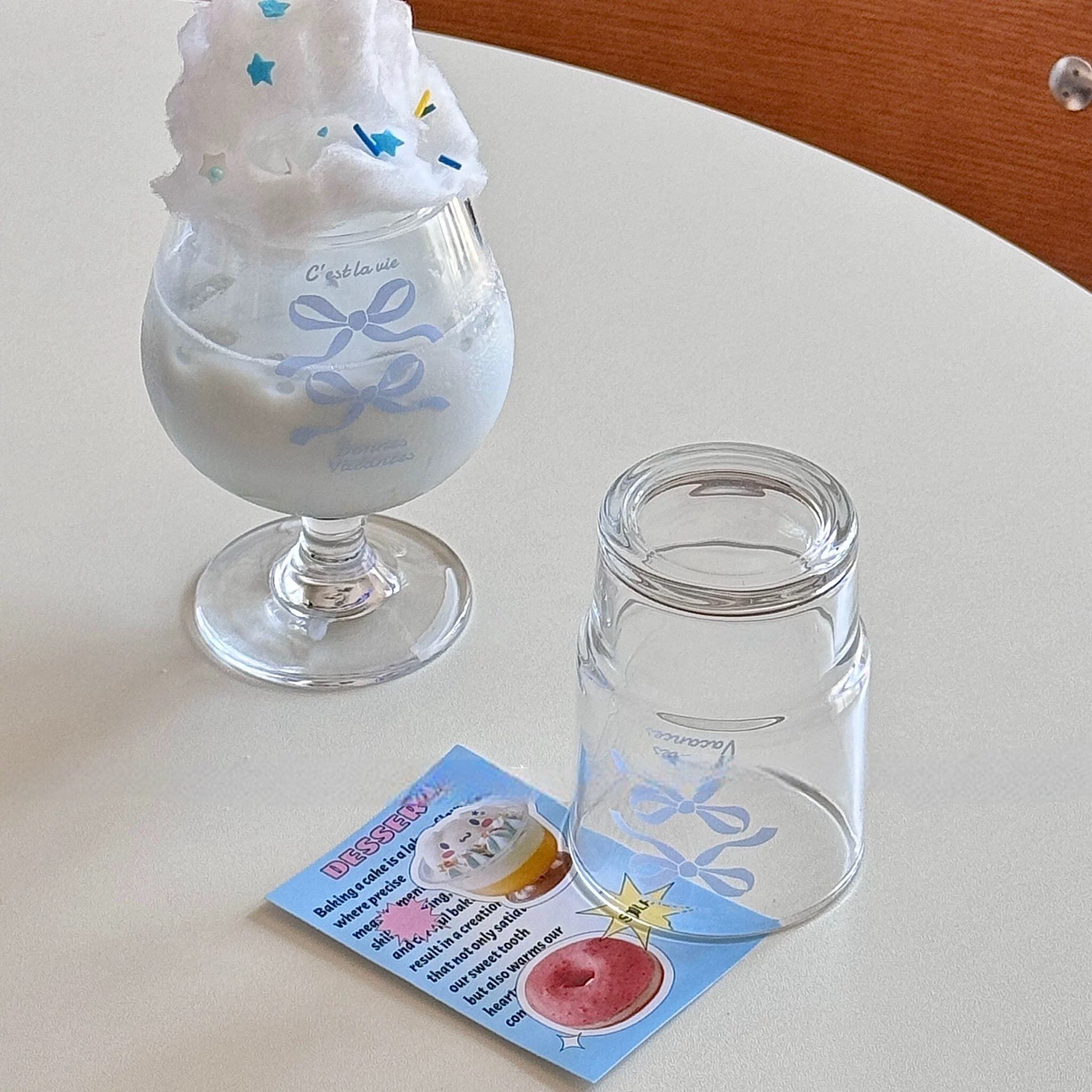 NEW♡ribbonグラスカップ ゴブレット ピンク ブルー リボン バレエコア ピンク グリーン パステルカラー レタリンググラス homecafe おうちカフェ マグカップ グラス プレート 韓国インテリア 韓国雑貨