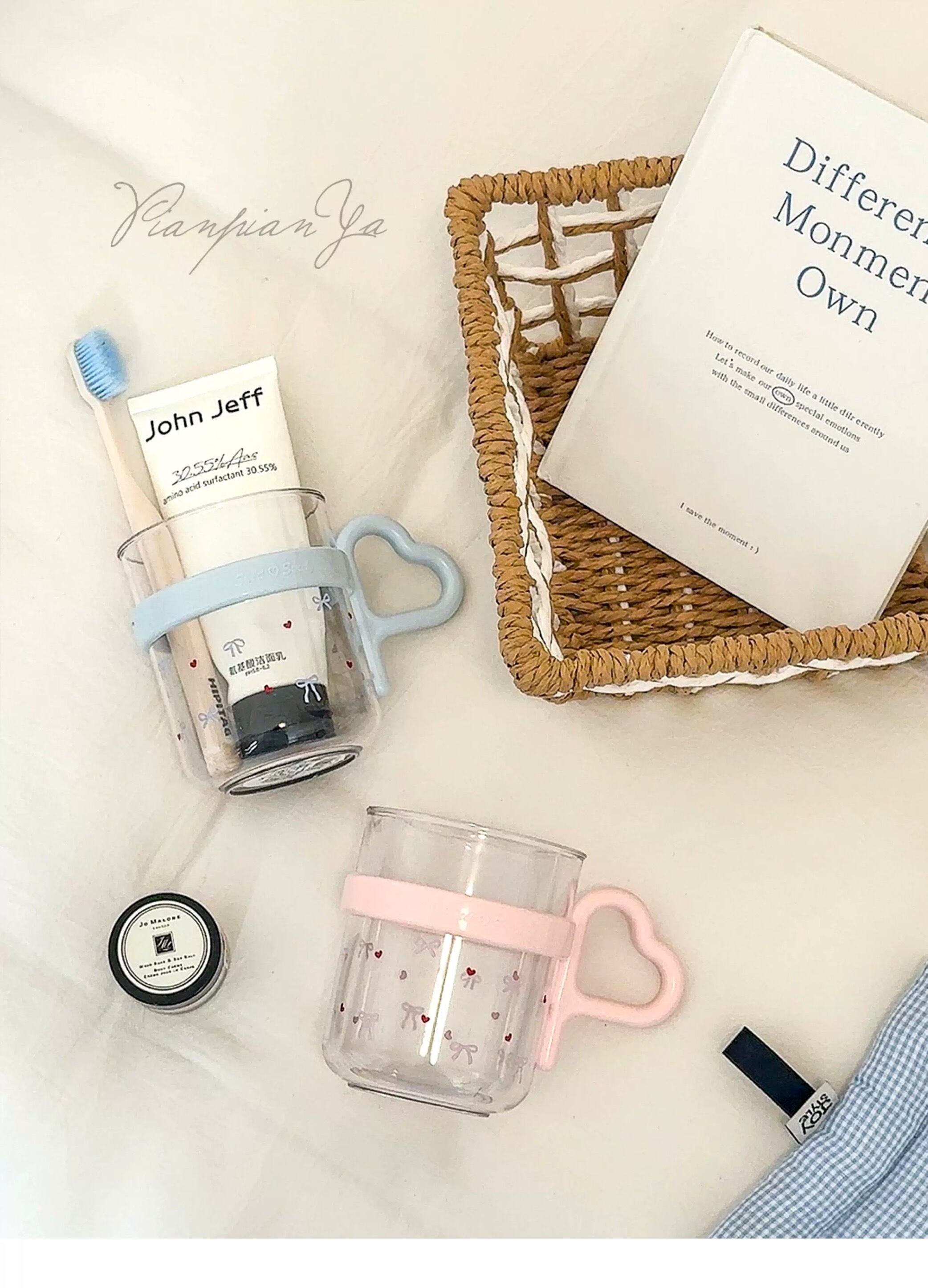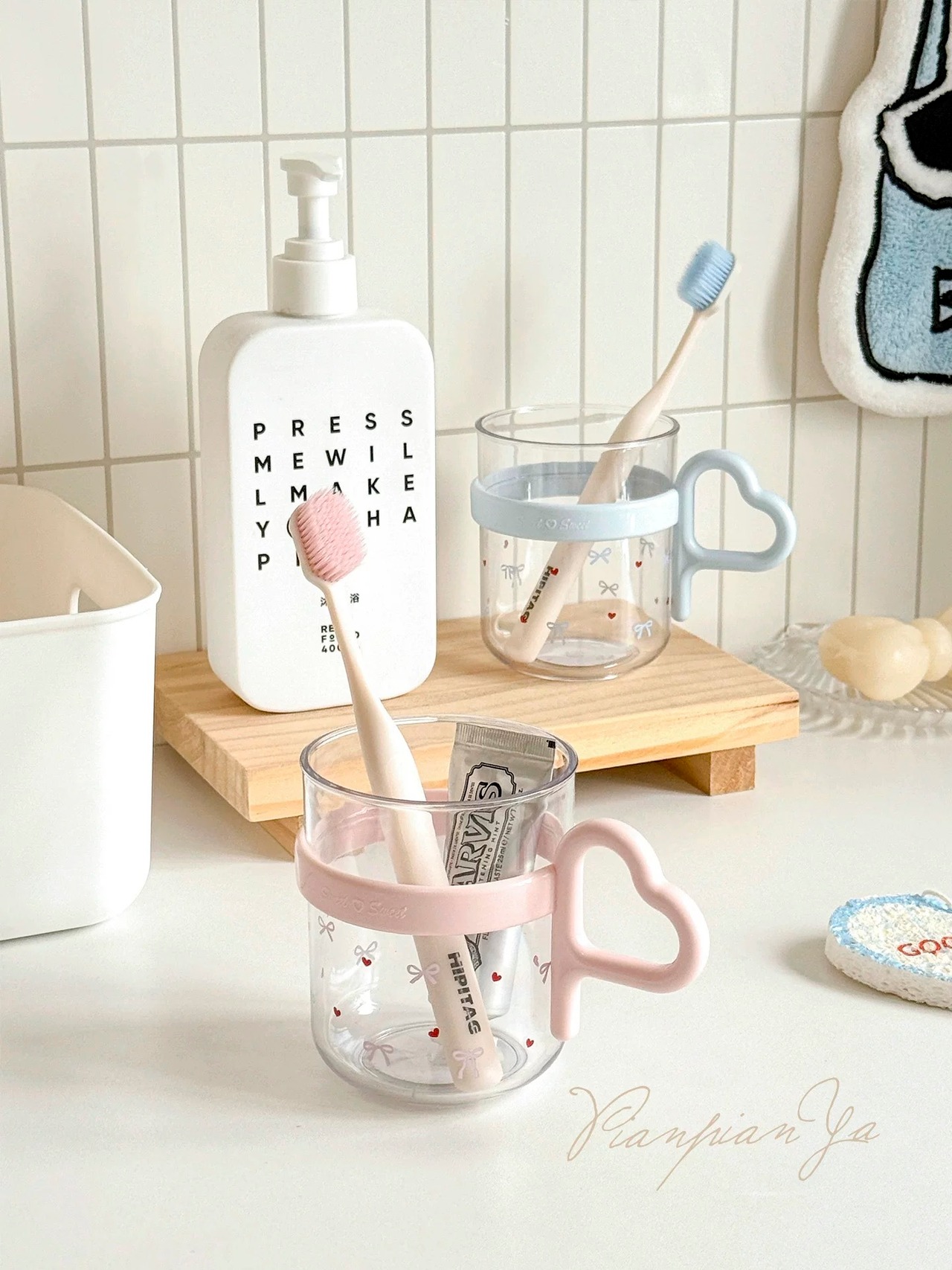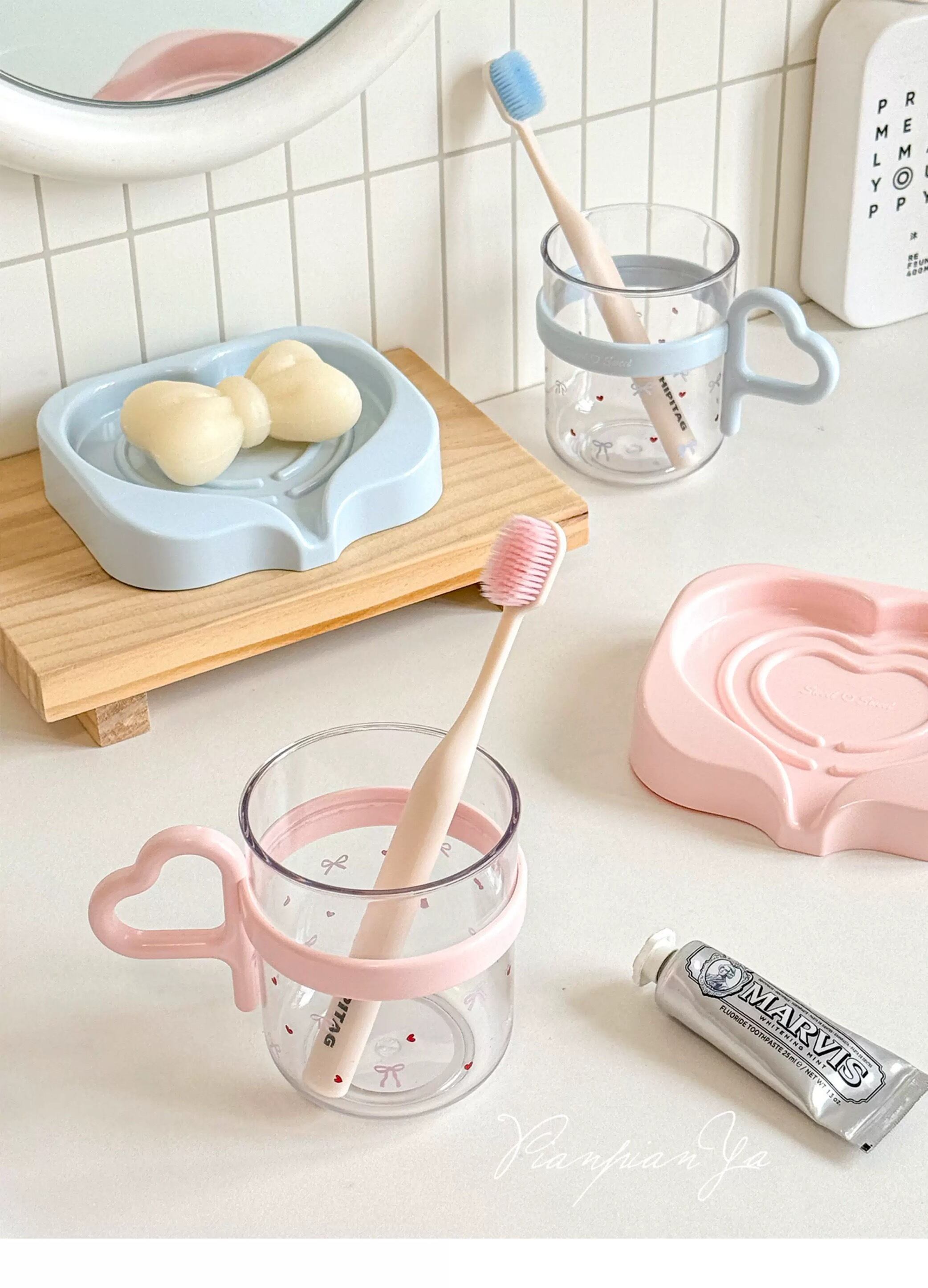 ハート×リボンのプラカップ 子供用 幼稚園 保育園 歯磨き トラベル 旅行用 持ち歩き用 洗面所 コップ 韓国インテリア 韓国雑貨 コップ