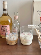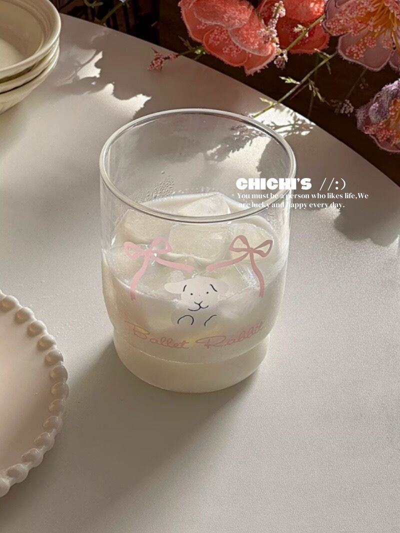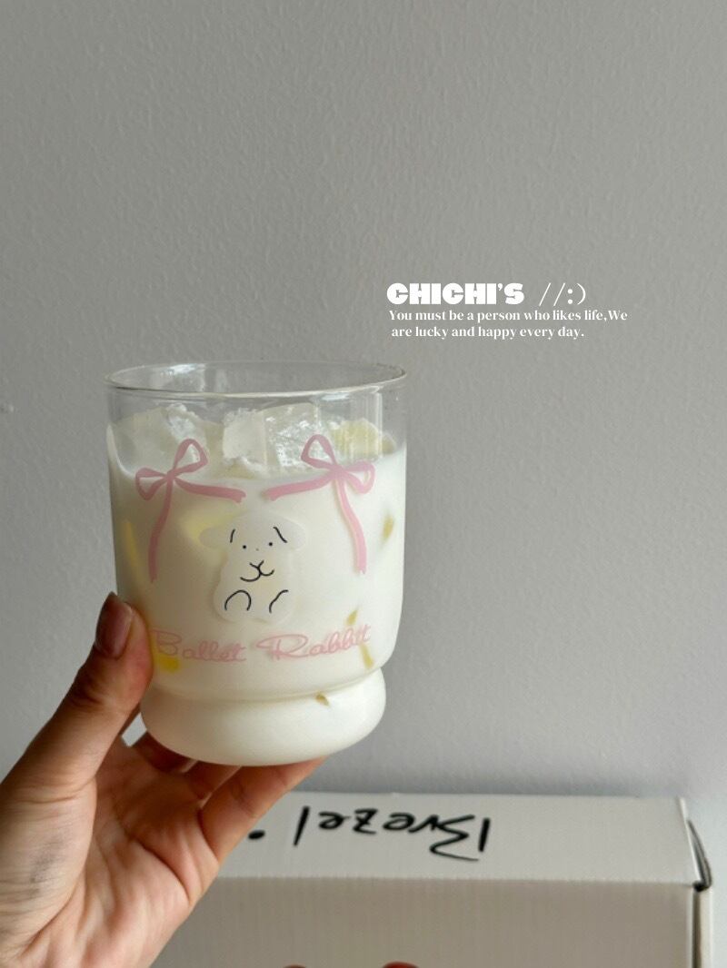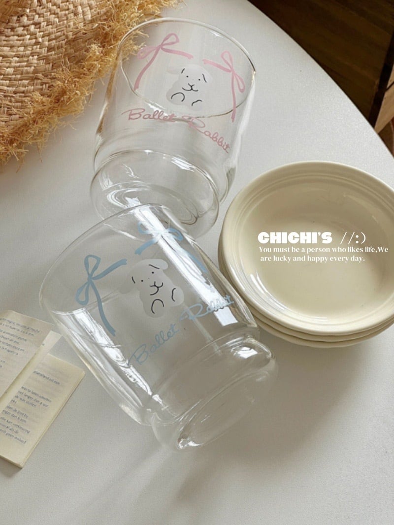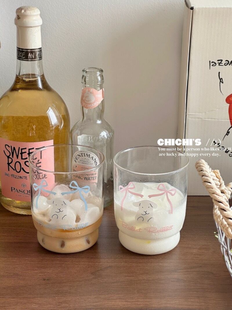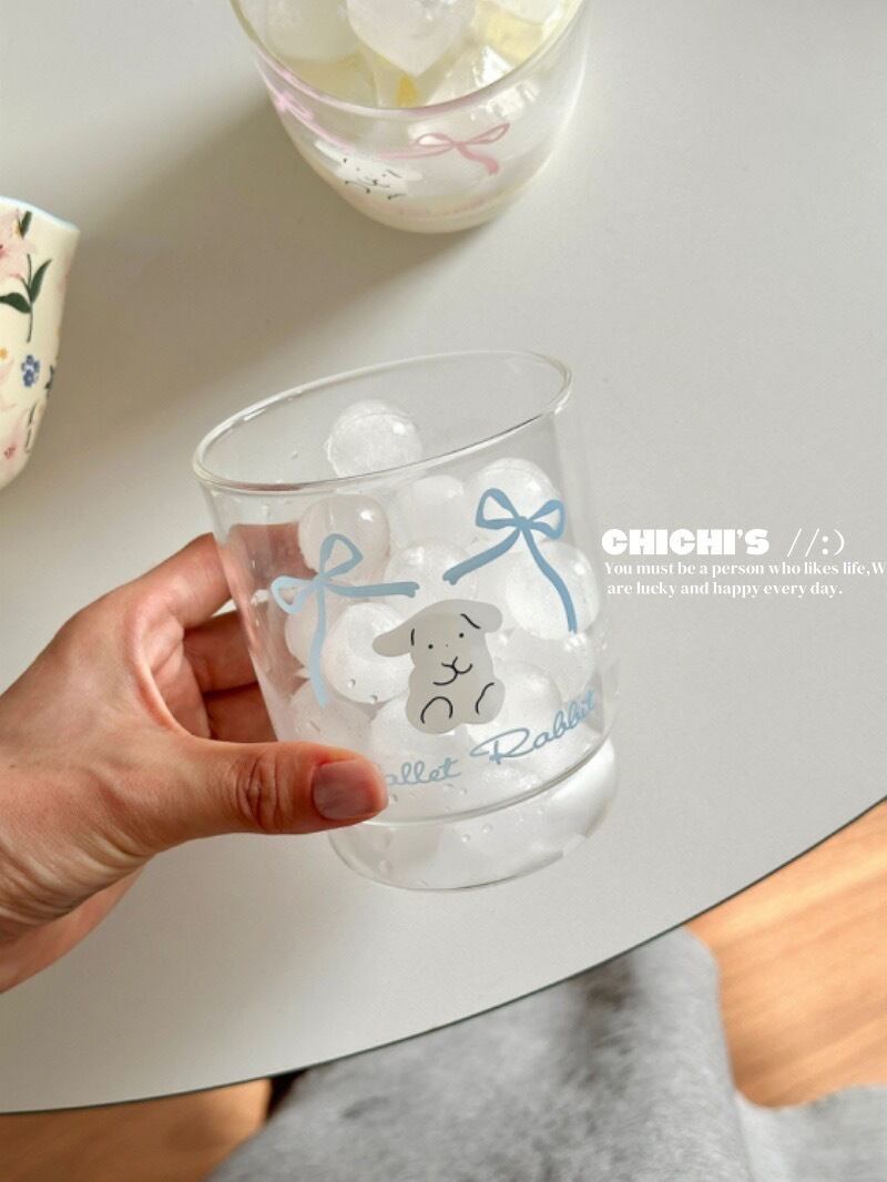 2colorsわんこのリボングラスカップ バレエコア ピンク ブルー グリーン パステルカラー レタリンググラス homecafe おうちカフェ マグカップ グラス プレート 韓国インテリア 韓国雑貨 犬 アニマル柄