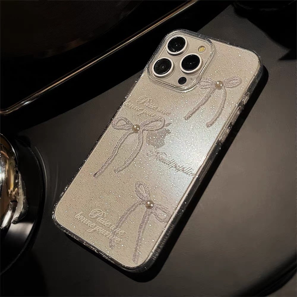 キラキラパールリボンのiPhoneケース ピンク pink ribbon 나비 バタフライ ナビ 蝶々 レジン クリアケース スマホ ニュアンスカラー オレンジ ベージュ 韓国ファッション 韓国雑貨