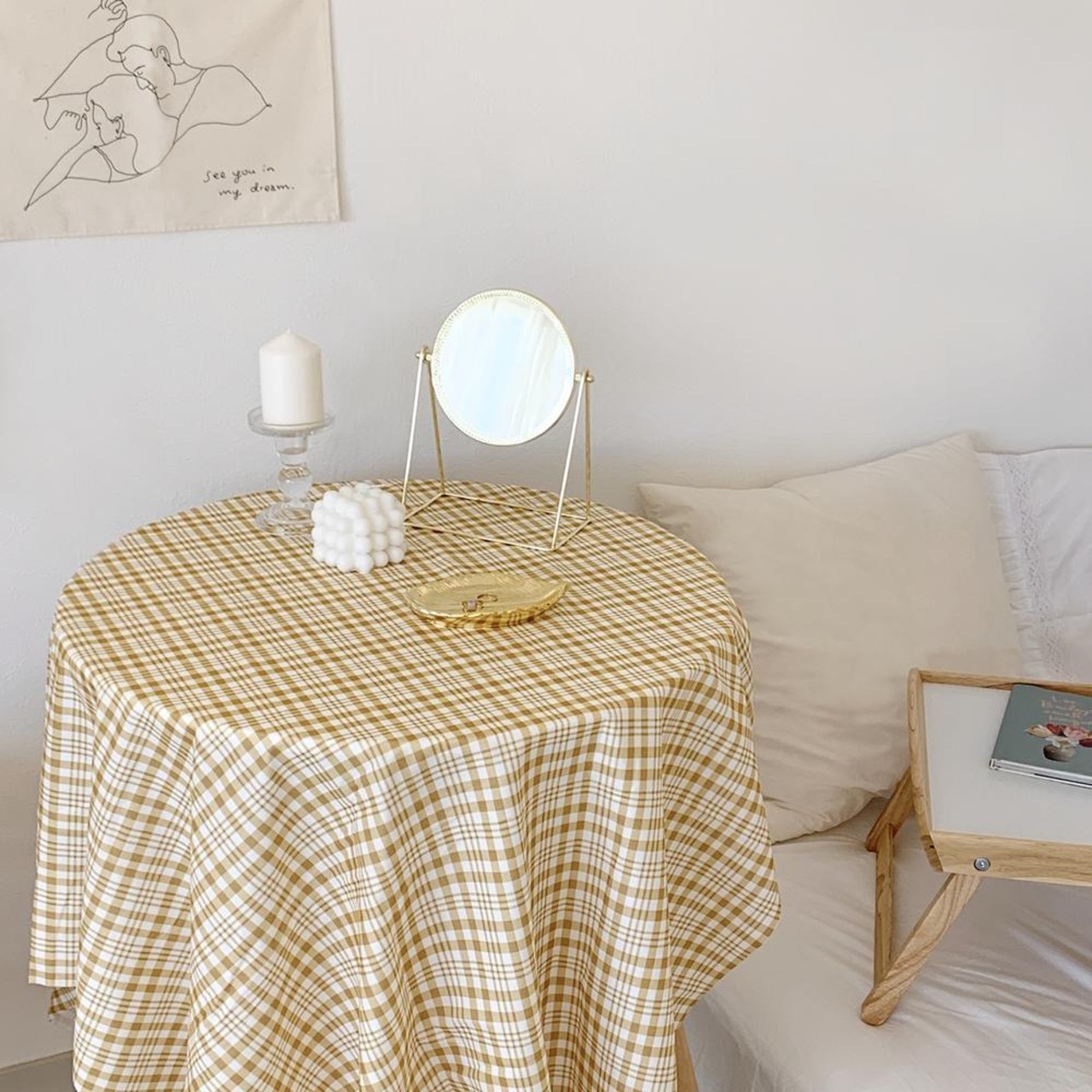 チェック柄テーブルクロス イエロー 黄色 韓国インテリア 韓国雑貨