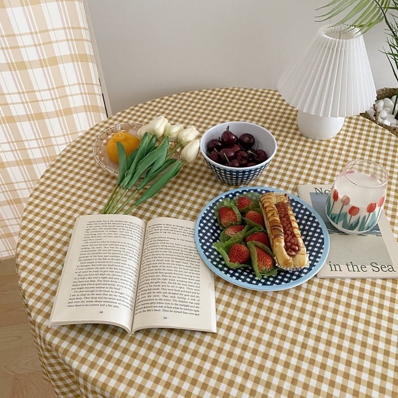 ギンガムチェックテーブルクロス くすみイエロー 韓国インテリア 韓国雑貨
