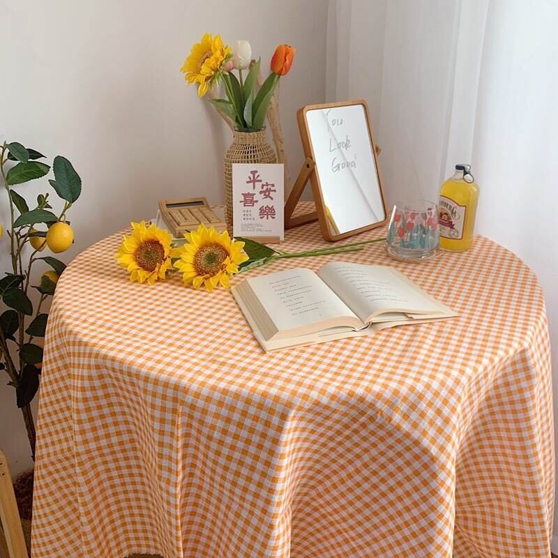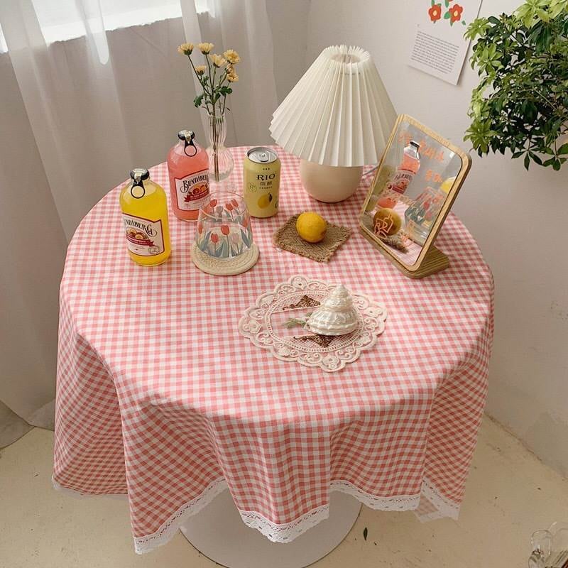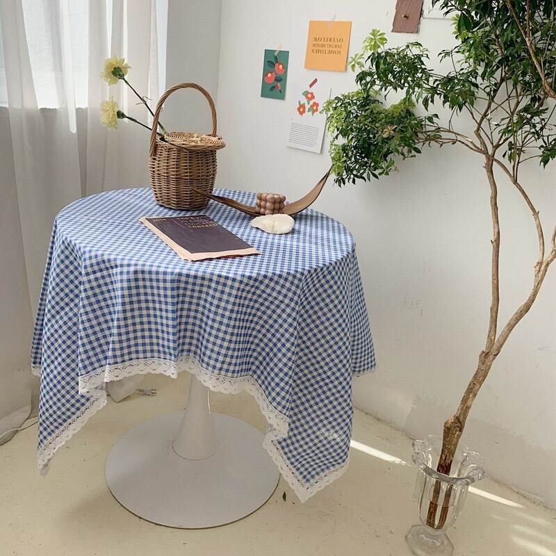 4colorsレース付きギンガムチェックテーブルクロス 韓国インテリア 韓国雑貨