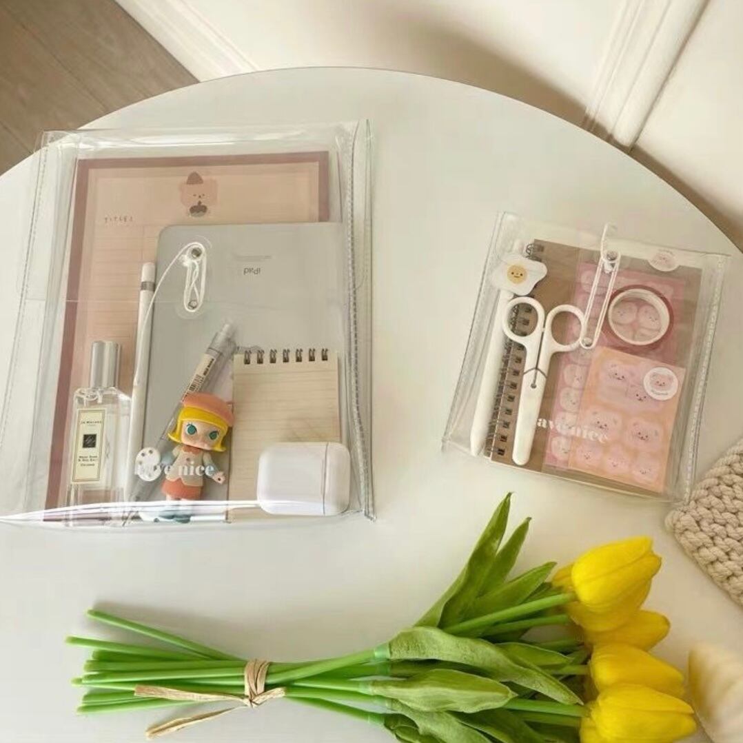 (L)ダイアリークリアポーチ pvc ipadポーチ パソコンケース タブレット ポーチ pc iPhone スマホ マルチケース 小物入れ 花柄 韓国ファッション