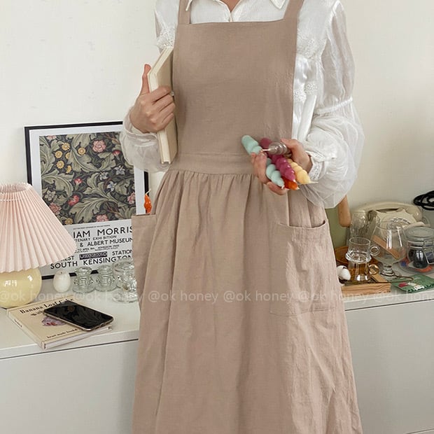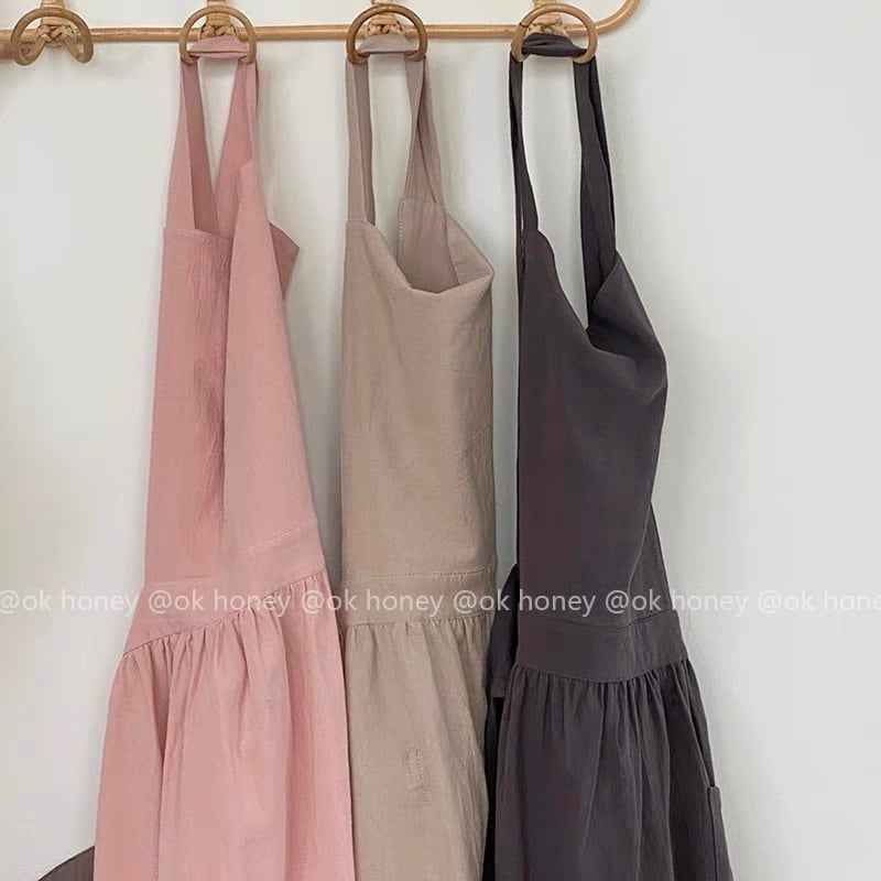 koreaエプロン 韓国 ナチュラルカラー ピンク ベージュ グレー ナチュラル 韓国インテリア 韓国雑貨 同棲 カップル おうちカフェ 料理 プレゼント