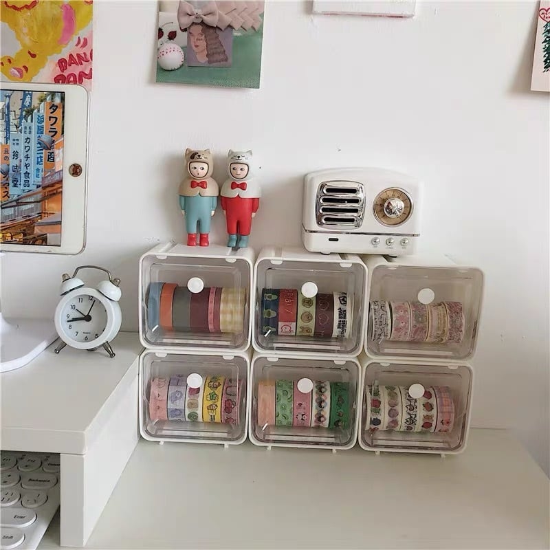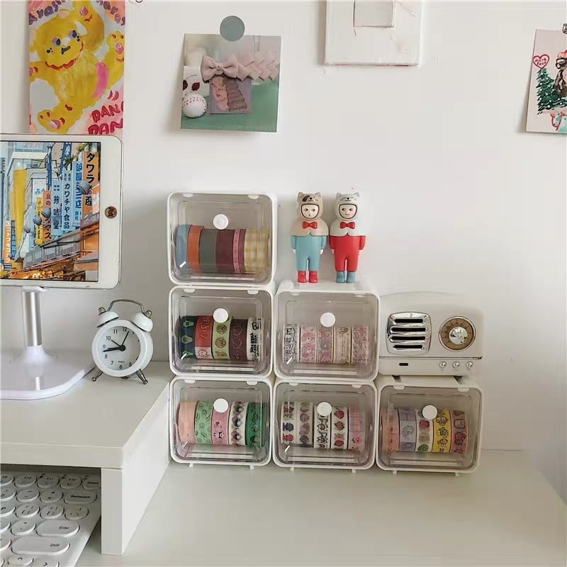 ミニ収納ケース ストレージボックス マスキングテープ マステ ホワイトストレージボックス マルチケース ドレッサー コスメボックス ティッシュカバー 韓国インテリア 韓国雑貨 収納 小物入れ