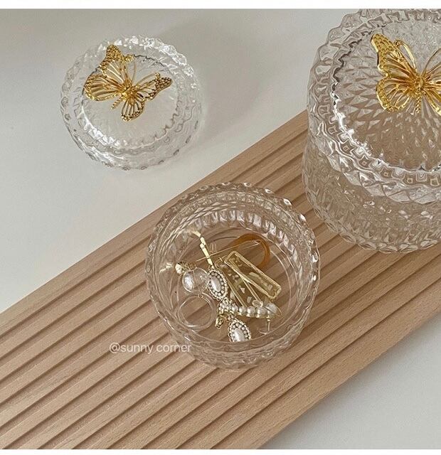 蝶のガラスケース アンティーク風収納ケース ナビ 小物入れ マルチホルダー 蝶々 ヴィンテージ 置き画くら部 キャンドルスタンド 韓国インテリア 韓国雑貨