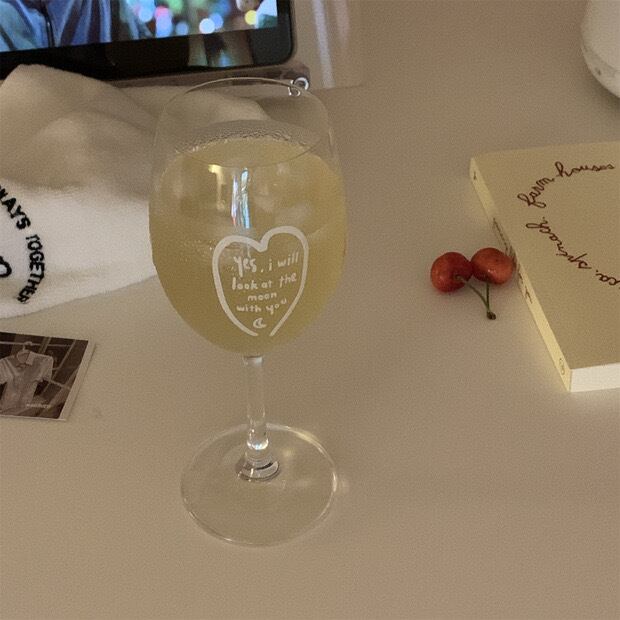 ハートのワイングラス レタリング クリアグラスカップ パフェ ラウンド ゴブレット 韓国インテリア 韓国雑貨 コップ