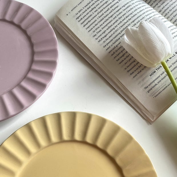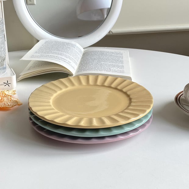 くすみカラープレート レトロ フリル ディッシュプレート 赤 レッド 可愛い かわいい 花柄 お皿 食器 韓国インテリア 韓国雑貨 コップ
