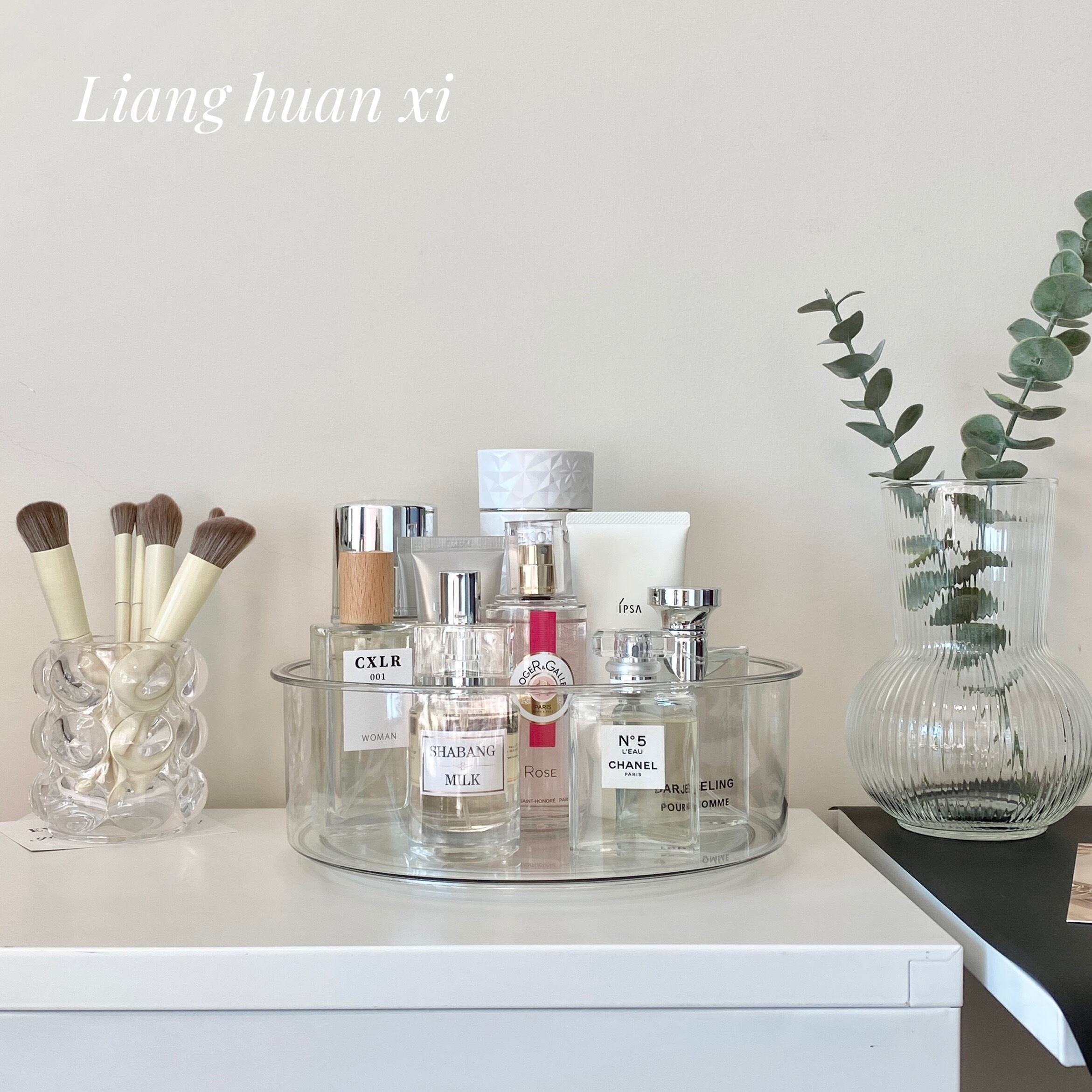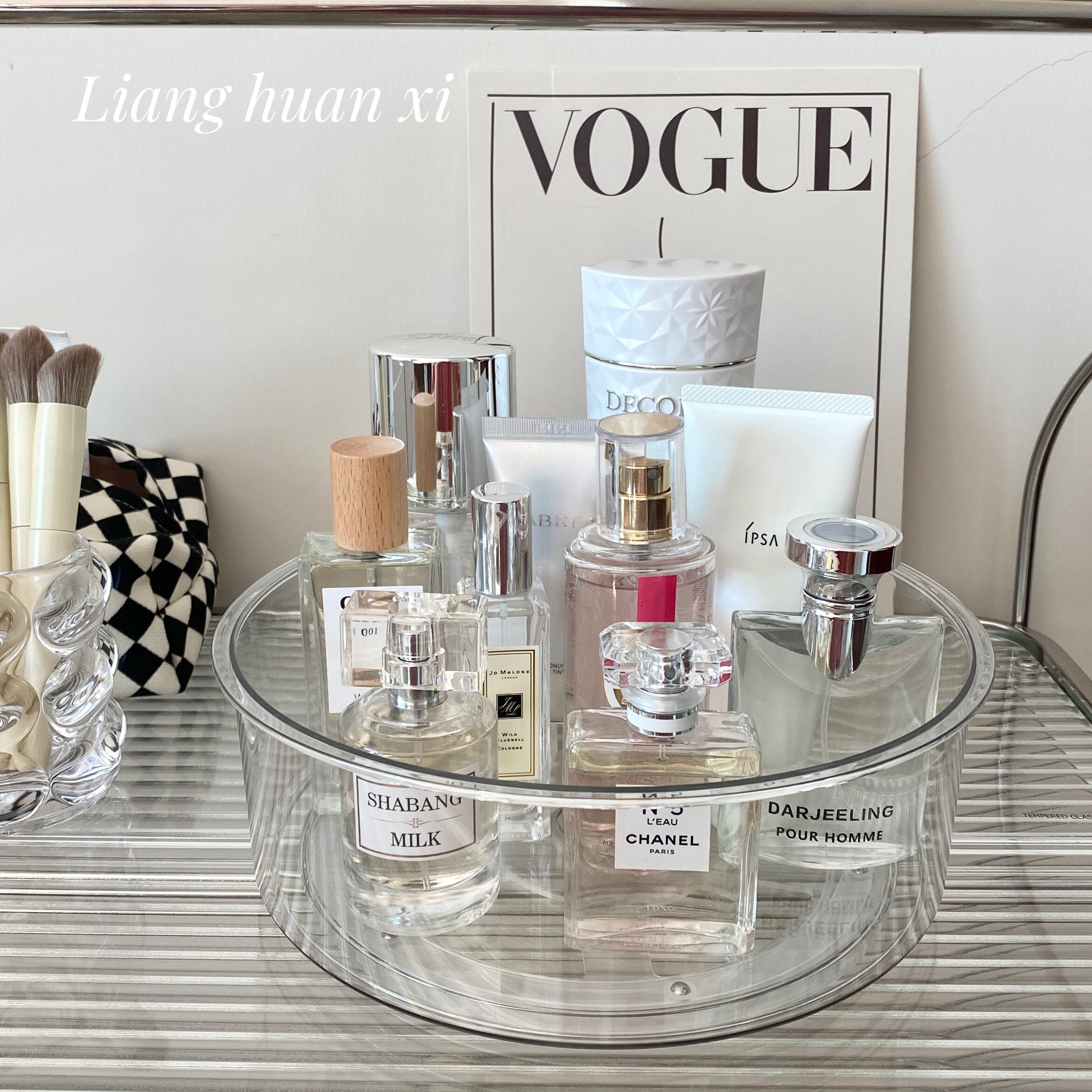 回転式クリア収納スタンド 360°回転 ドレッサー メイク ストレージラック シンプルラック 棚 ホワイトインテリア 収納ケース シェルフ 韓国インテリア 韓国雑貨 収納 キッチン