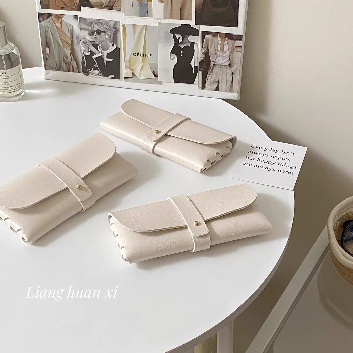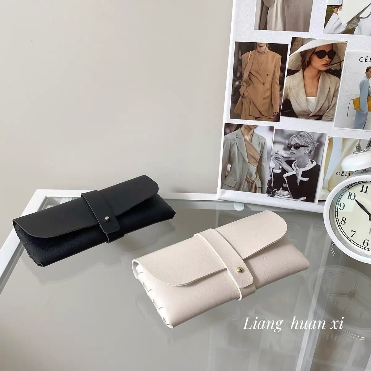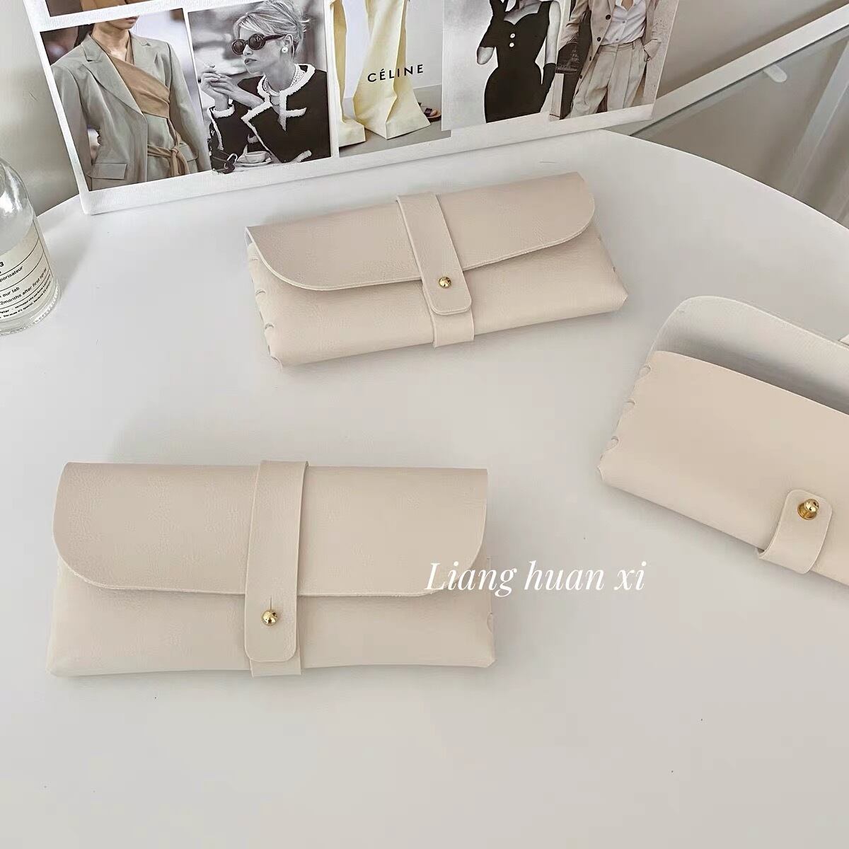 レザー調メガネケース ホワイト ブラック 皮 眼鏡ケース 茶色 ポーチ 韓国ファッション