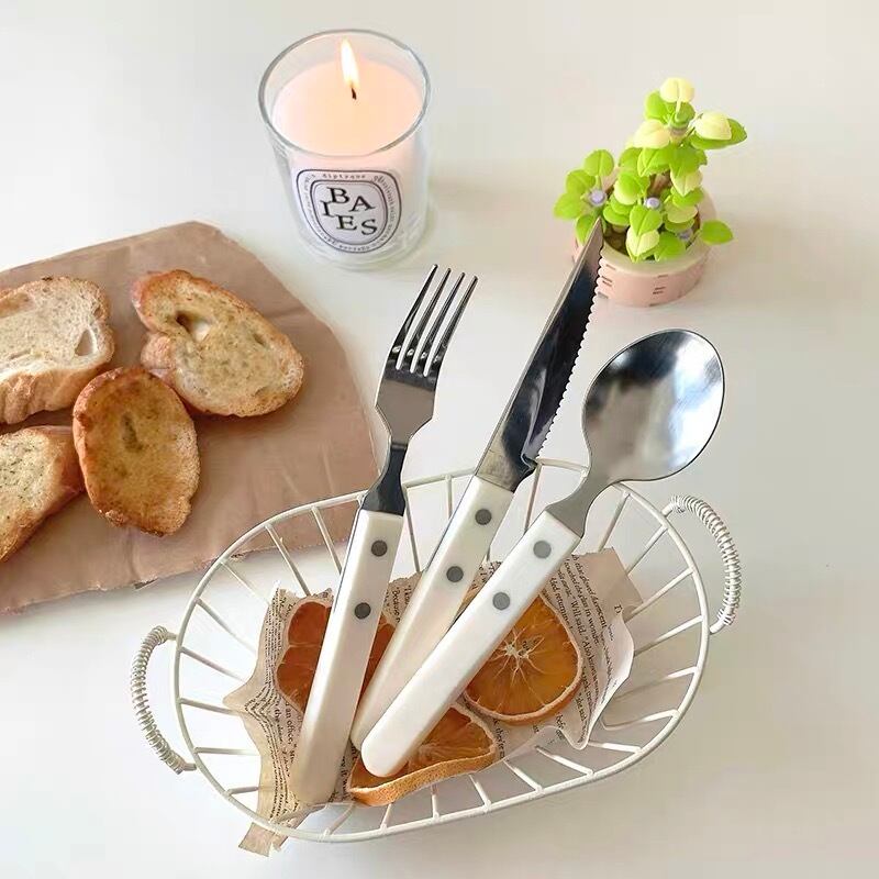 シンプルカトラリーセット ホワイトインテリア ナチュラル ステンレスカトラリーセット スプーン フォーク ヴィンテージ 韓国インテリア 韓国雑貨