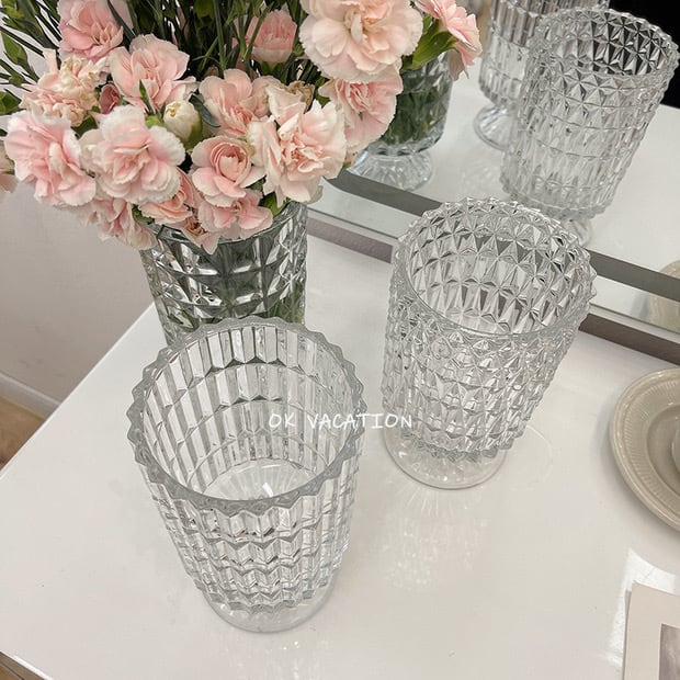 クリアガラス花瓶 アンティーク調 ヴィンテージ風 ぽこぽこマルチホルダー 花瓶 フラワーベース 韓国インテリア 韓国雑貨 クリアガラス フランフラン ザラホーム系
