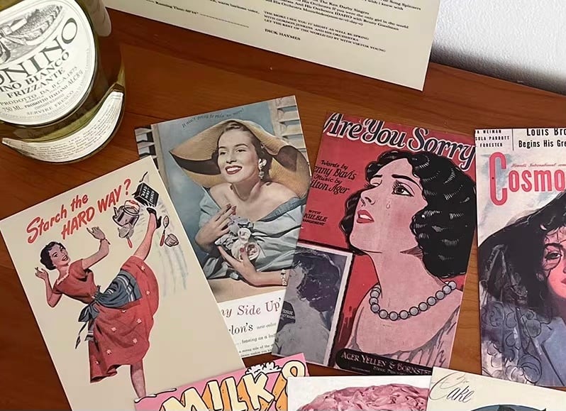 レトロピンクのポストカード アンティーク調 ヴィンテージポストカード パリ カフェ ディカプリオ スイーツ アンティーク 韓国インテリア 韓国雑貨