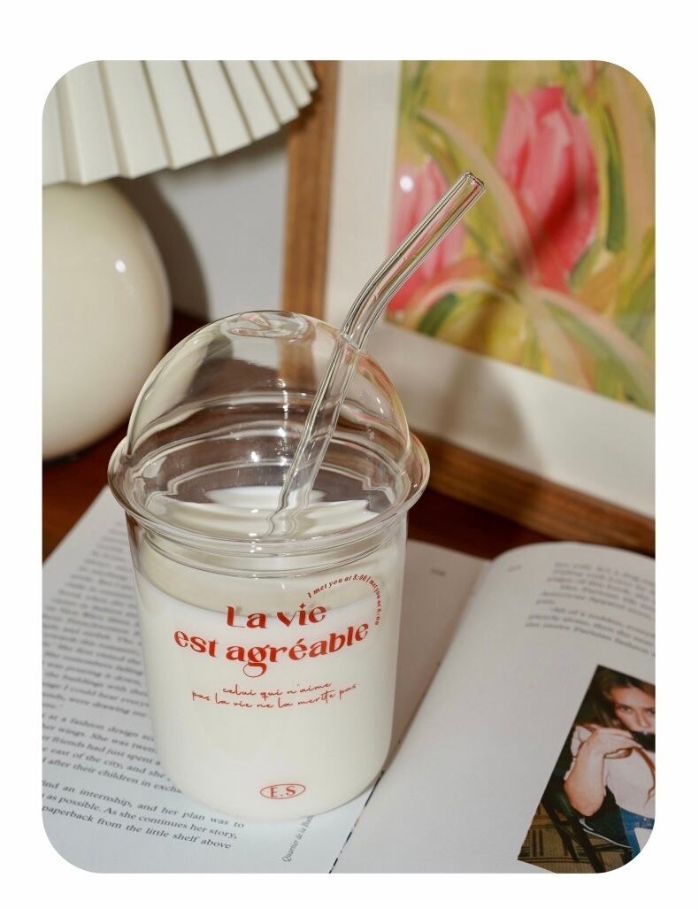フタ付きレタリンググラス タンブラー ストロー付き homecafe おうちカフェ シンプル 英字 マグカップ グラス プレート 韓国インテリア 韓国雑貨