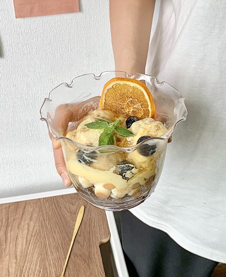 ガラスのなみなみ朝食ボウル ディッシュプレート お皿 朝食 グラノーラ 食器 韓国インテリア 韓国雑貨 コップ