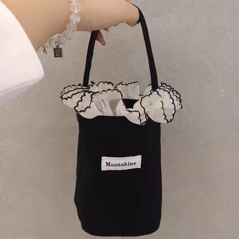 フリルのミニバッグ モノトーン お花バッグ ミニバッグ エコバッグ フラワー 花柄 韓国ファッション