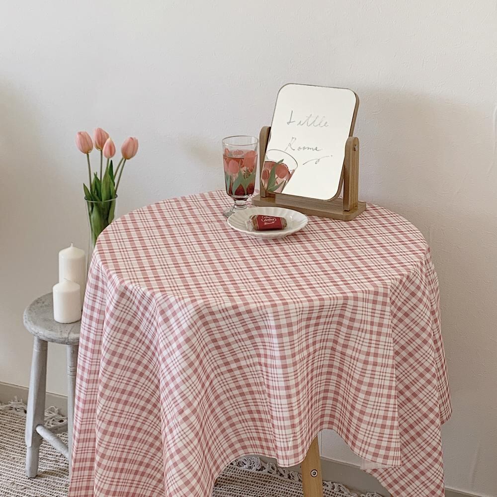 【即納】チェック柄テーブルクロス ピンク 韓国インテリア 韓国雑貨