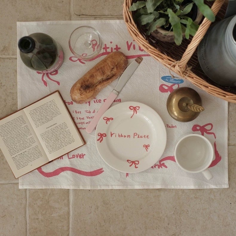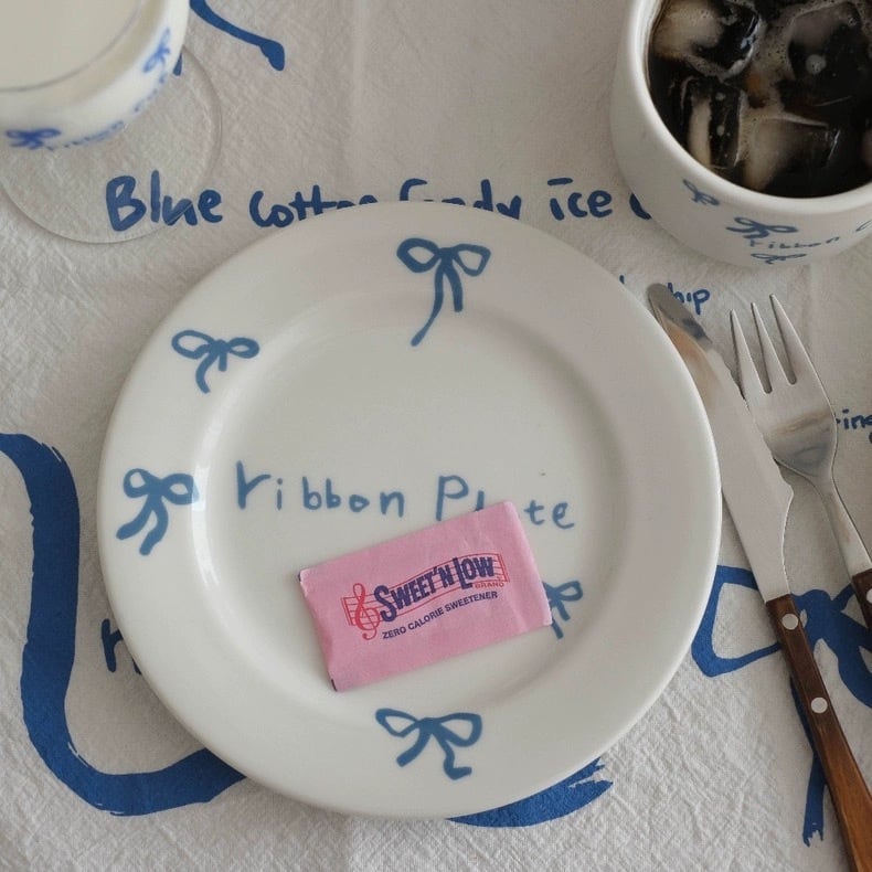 フレンチリボンディッシュプレート ブルー レッド お皿 食器 韓国インテリア 韓国雑貨 コップ