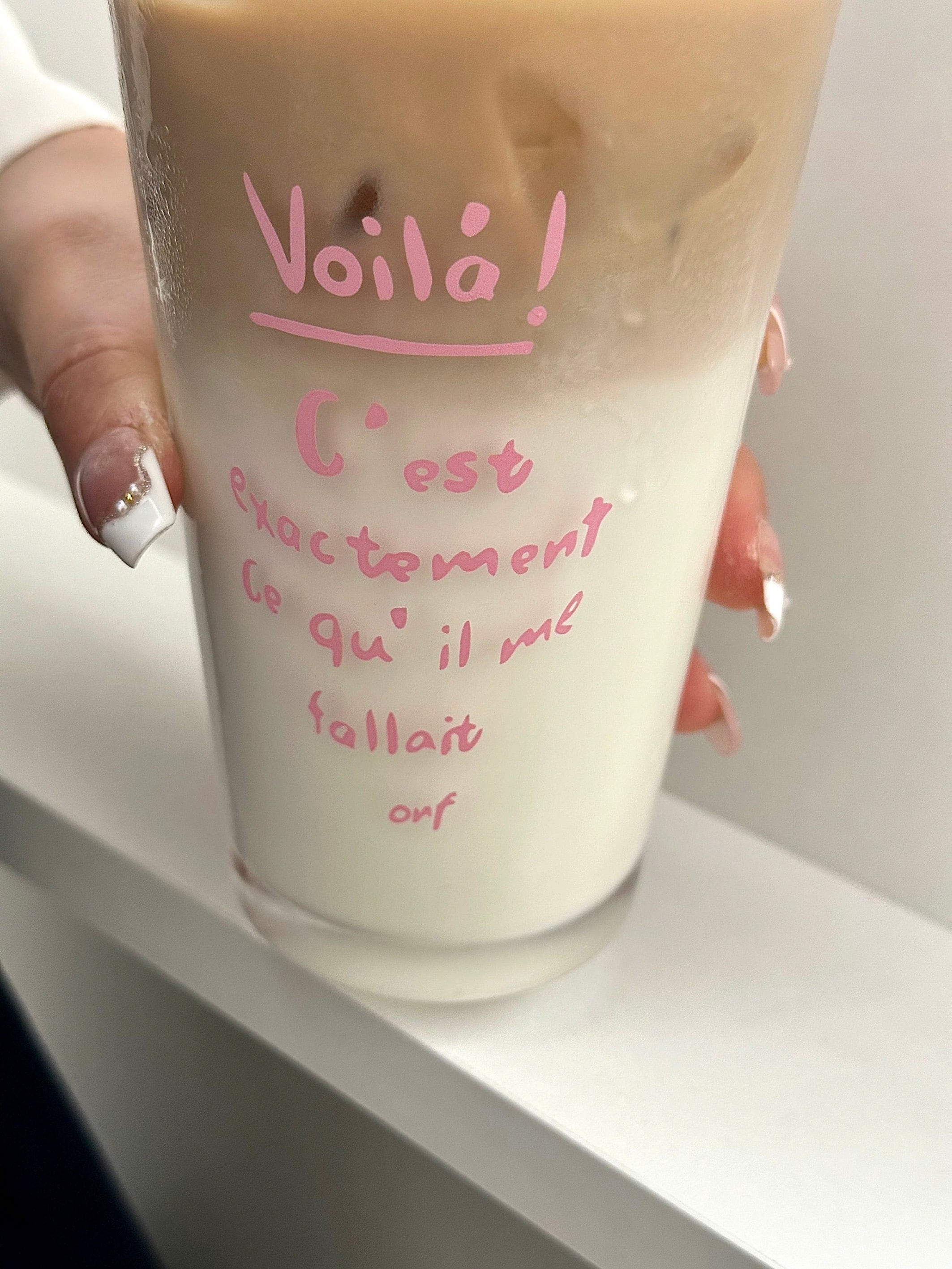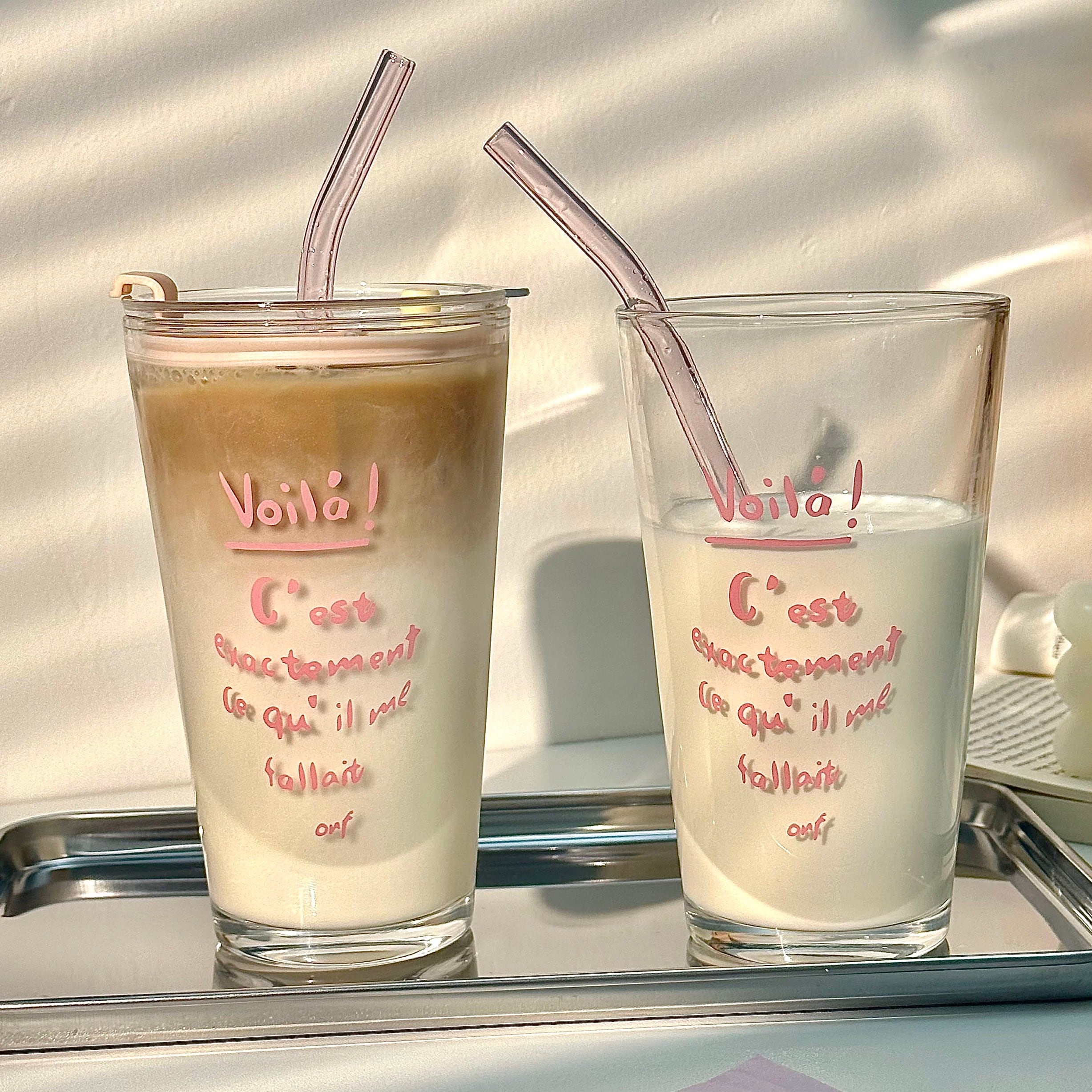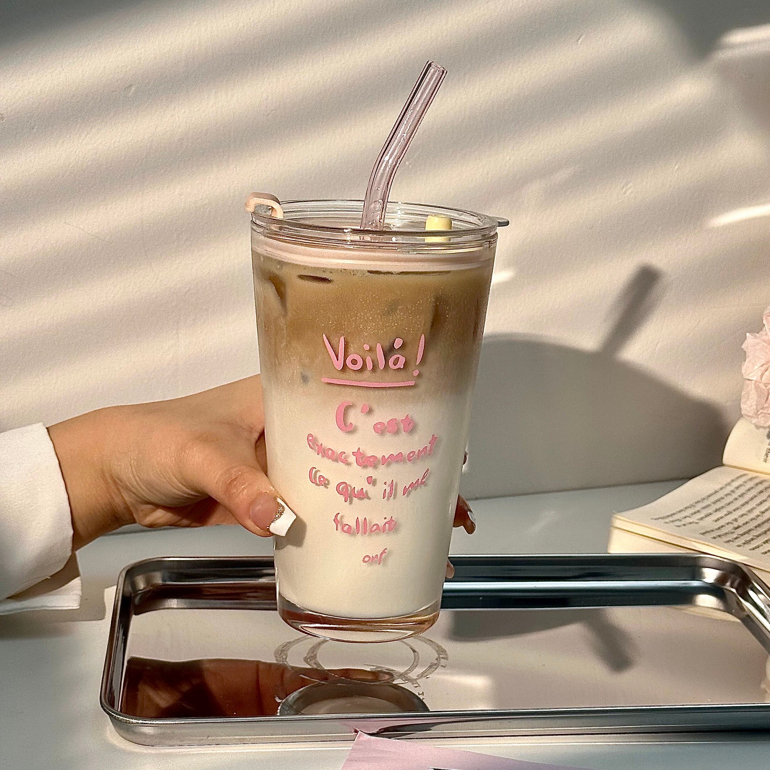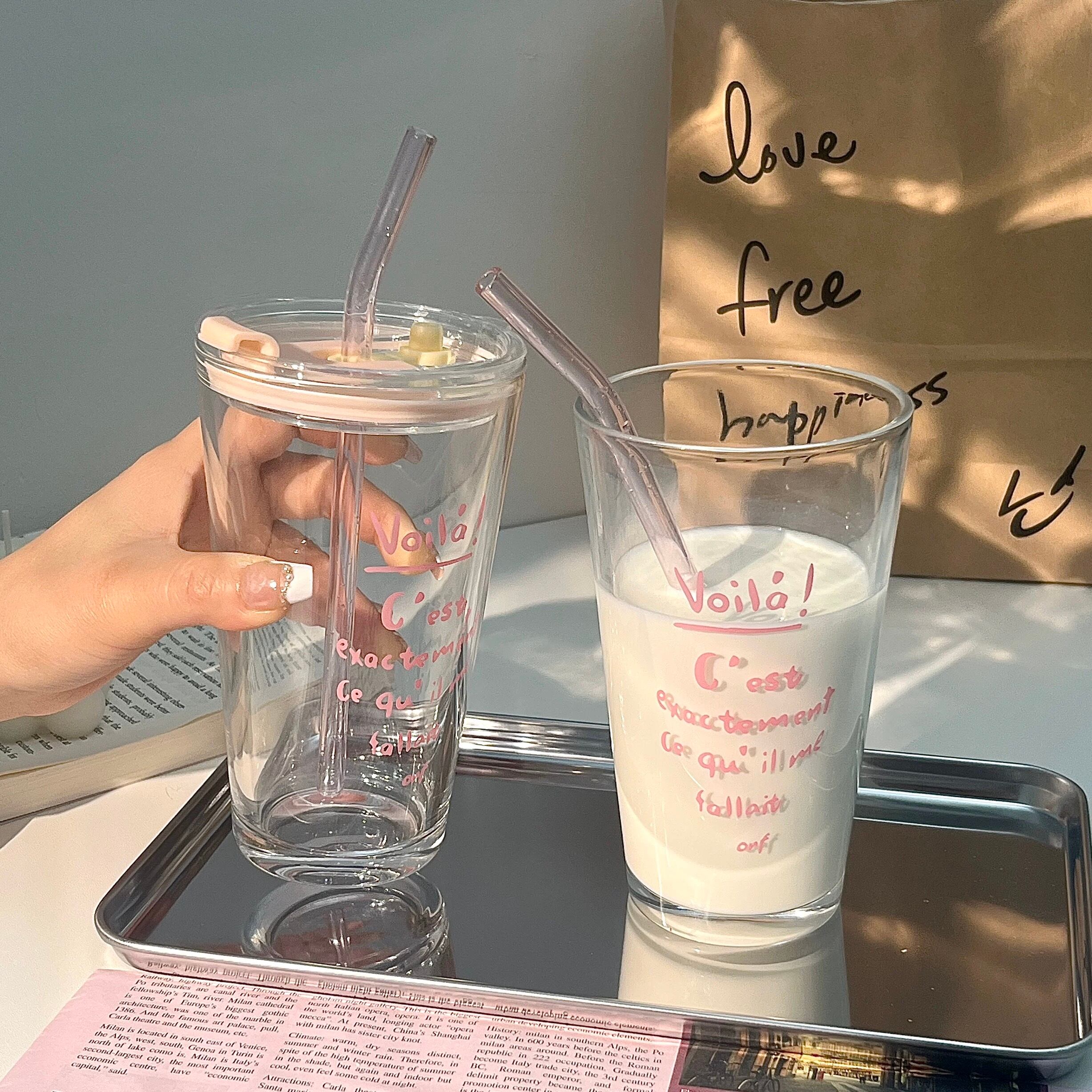 可愛いピンクの文字が映えるストロー付きのタンブラー♡