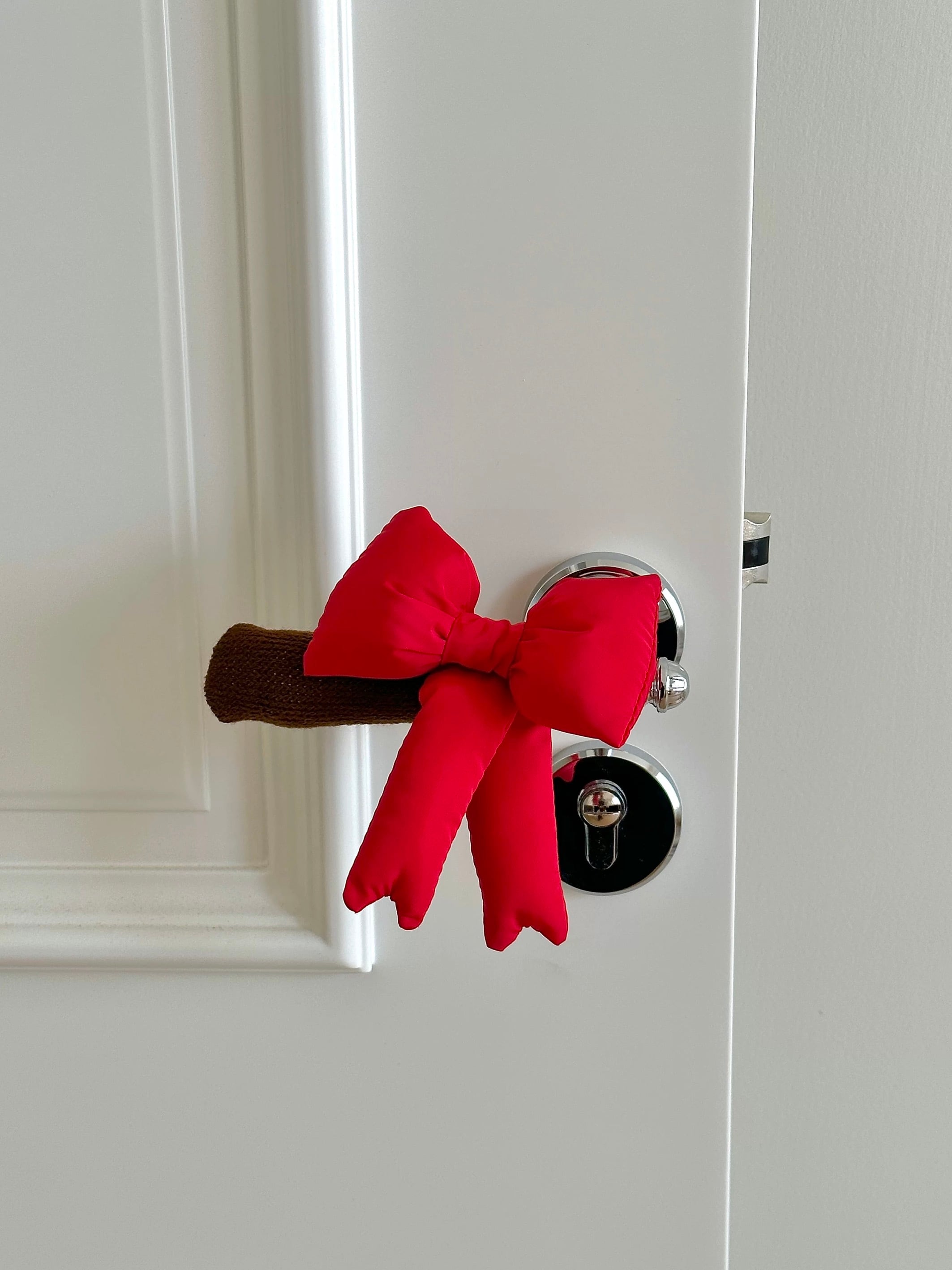 リボンのドアノブカバー バレエコア 淡色ロゴバスマット 韓国ラグマット アニマルラグマット ラグ ブラウン 韓国インテリア
