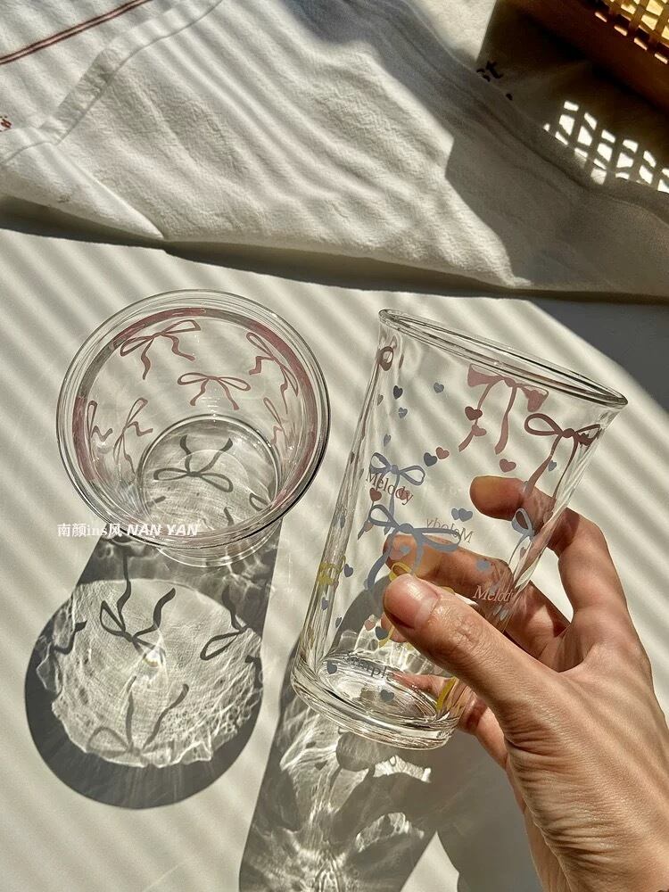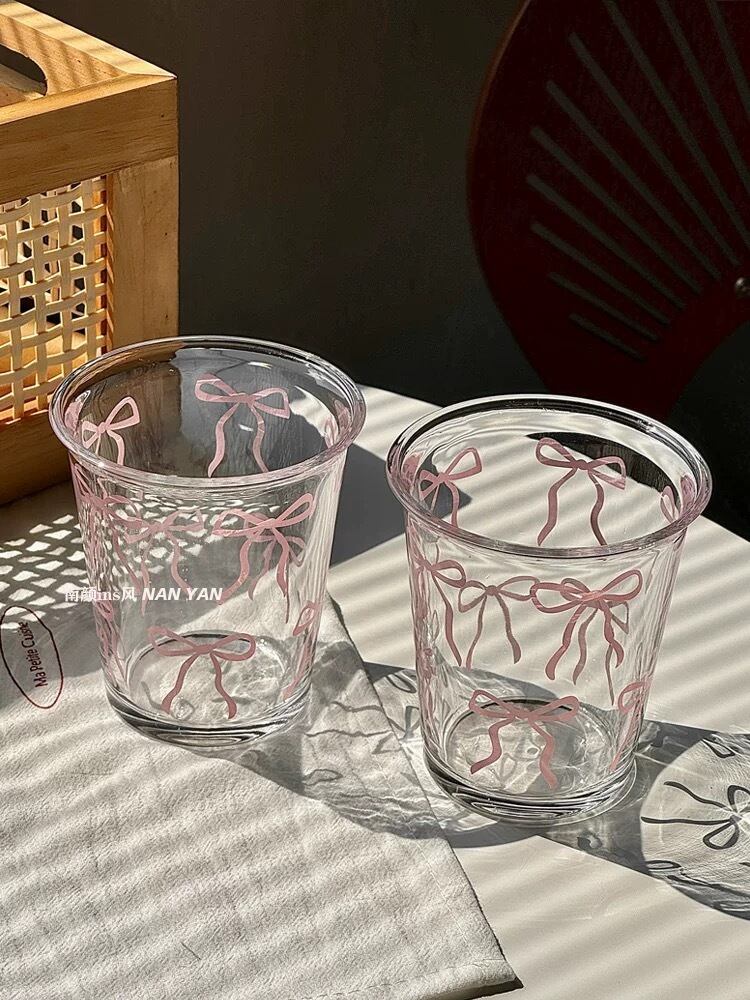 【即納】ribbonグラスカップ リボン バレエコア ピンク グリーン パステルカラー レタリンググラス homecafe おうちカフェ マグカップ グラス プレート 韓国インテリア 韓国雑貨